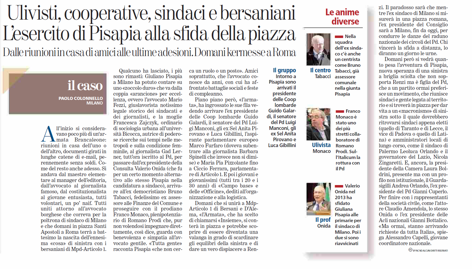 Pisapia: «Non col Pd, con i suoi ex elettori»Daniela Preziosi Manifesto